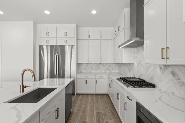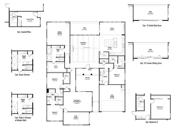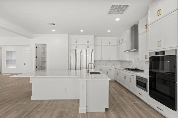 The Spur Cross floorplan features 4 bedrooms, a teen room, and 3.5 bathrooms. The 3 car garage provides ample parking. This quick move in home features 16' sliding glass doors at the great room and a sliding glass door onto the courtyard from the teen room. The master bathroom has been upgraded to feature a freestanding tub. The upgraded tile plank floor throughout with white cabinets makes the space light and bright perfect for entertaining.