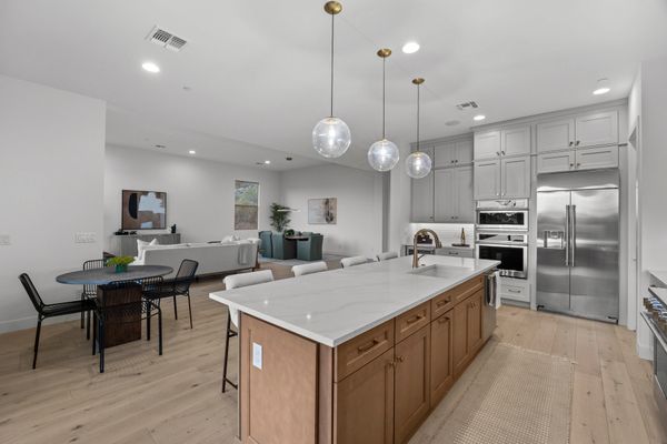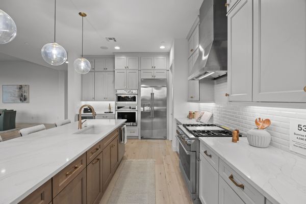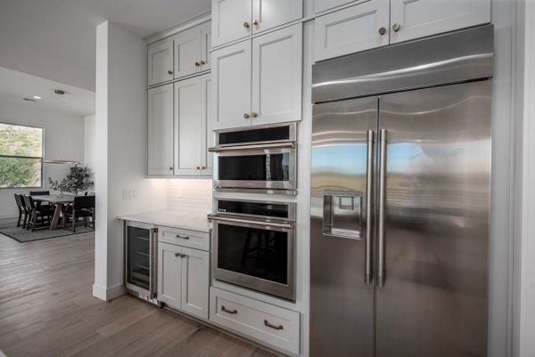 GE Monogram Appliances including upgraded Gas Range, Built In Fridge, Hood, 5 in 1 Speed Oven, Under Counter Beverage Center